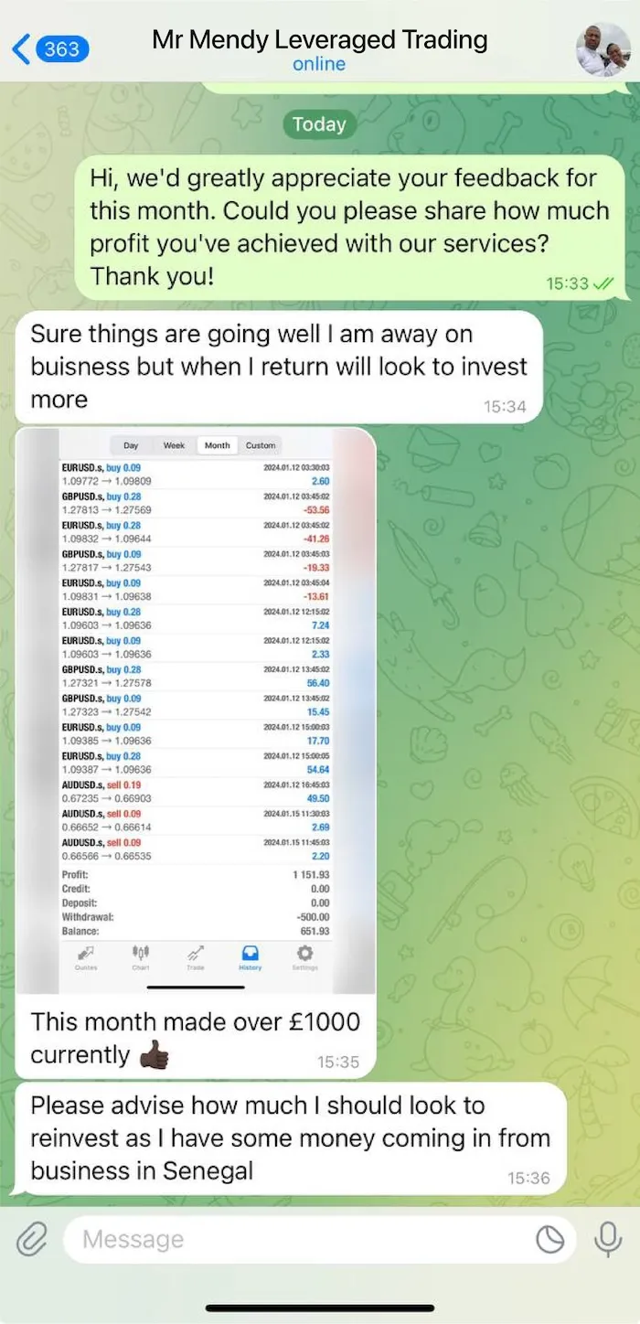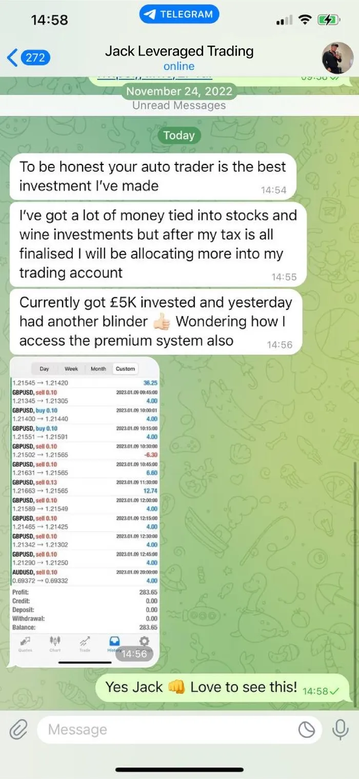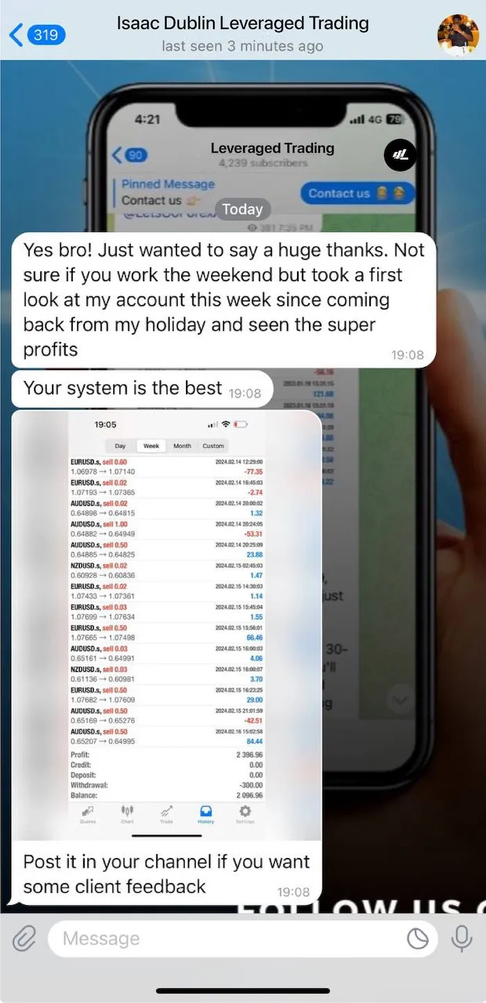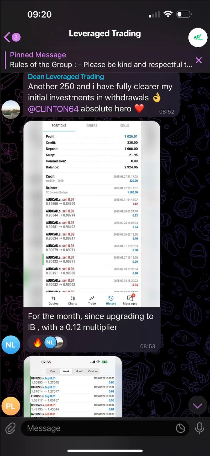 Most trading channels keep you in the dark no community, no real discussions, just faceless messages and cherry-picked screenshots. Our client channel is a space where everyone connects and talks openly about their experiences. You’re part of a network that collaborates and profits together. Members discuss everything because we have nothing to hide.